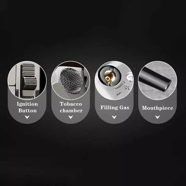 Operating it is simple! Fill it with butane gas, press the side ignition button, and enjoy a smooth, windproof flame for easy lighting.
