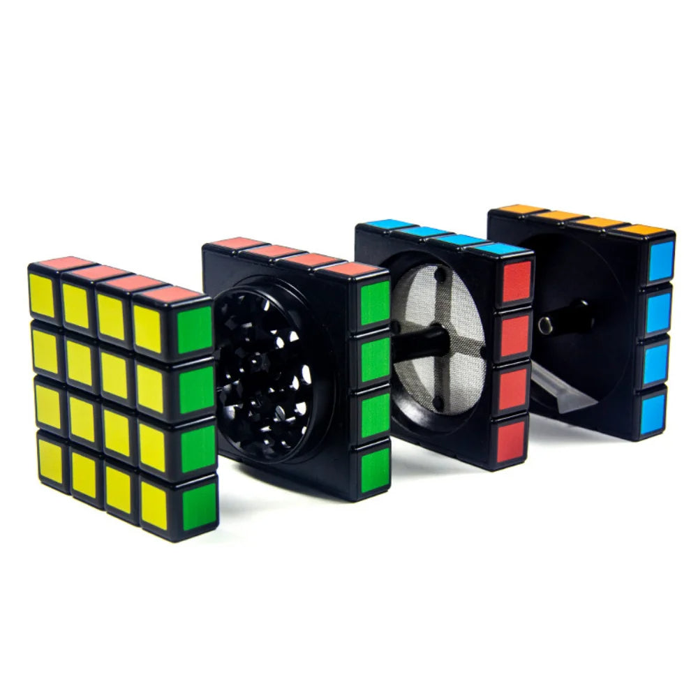 It combines a durable exterior designed to look like a Rubik's cube (often sturdy plastic) with effective grinding components inside, typically featuring sharp metal teeth (like zinc alloy) for efficient grinding.