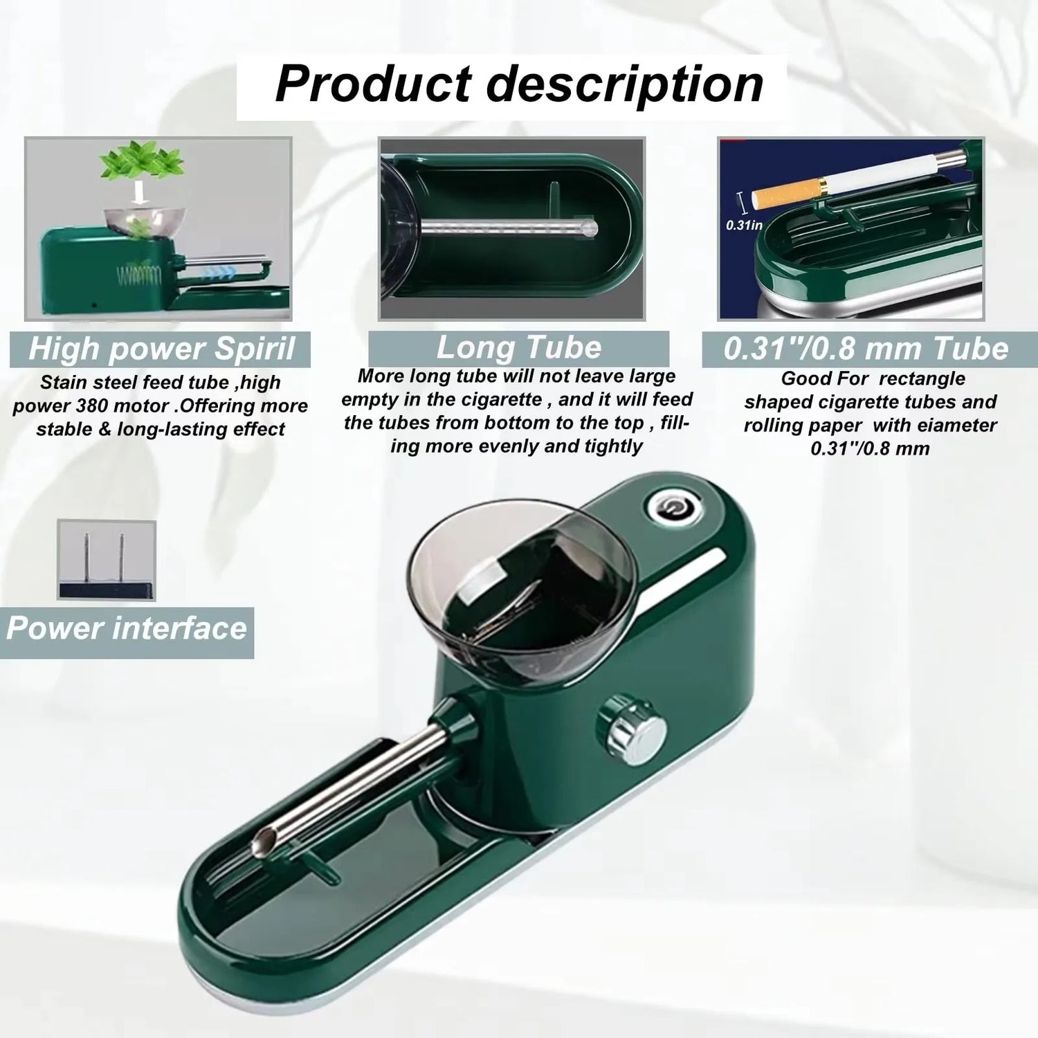 Powered by a durable 380 motor, the device evenly distributes tobacco or herb blends, creating gap-free and smooth rolls. -